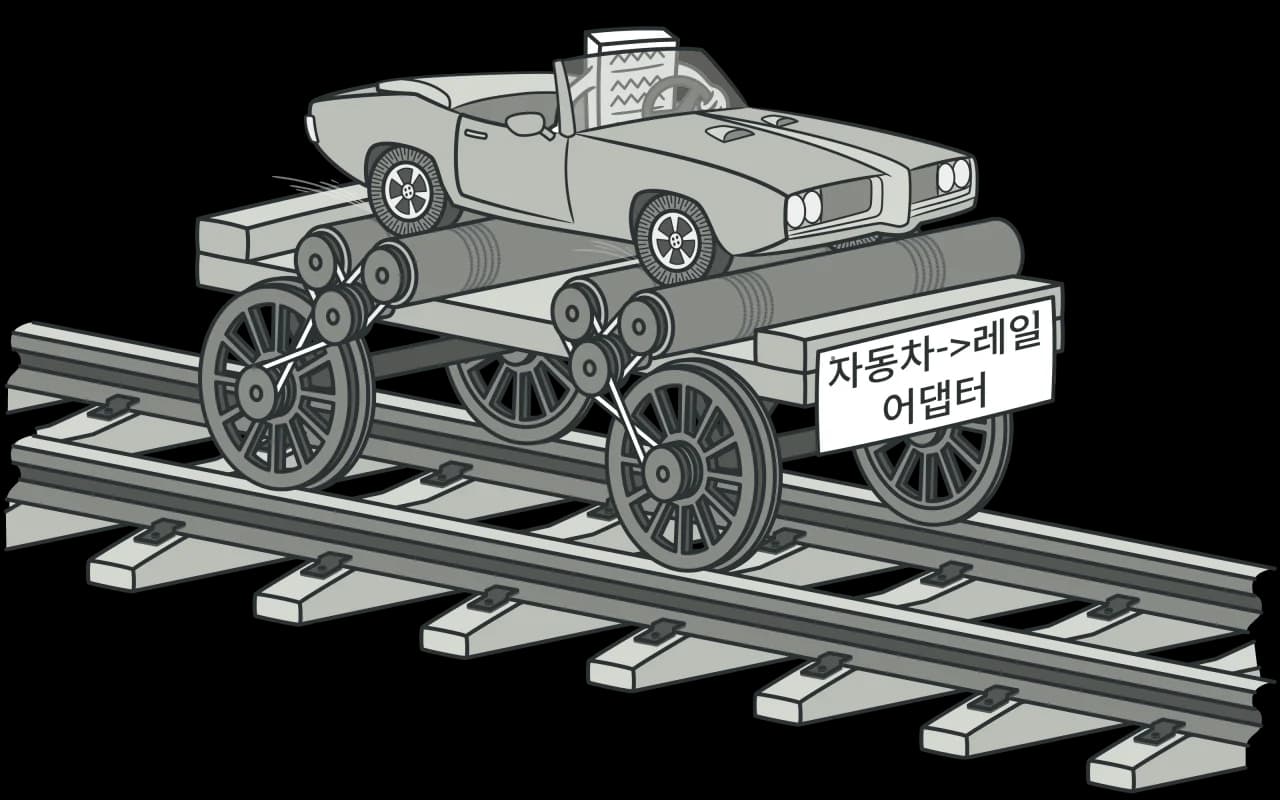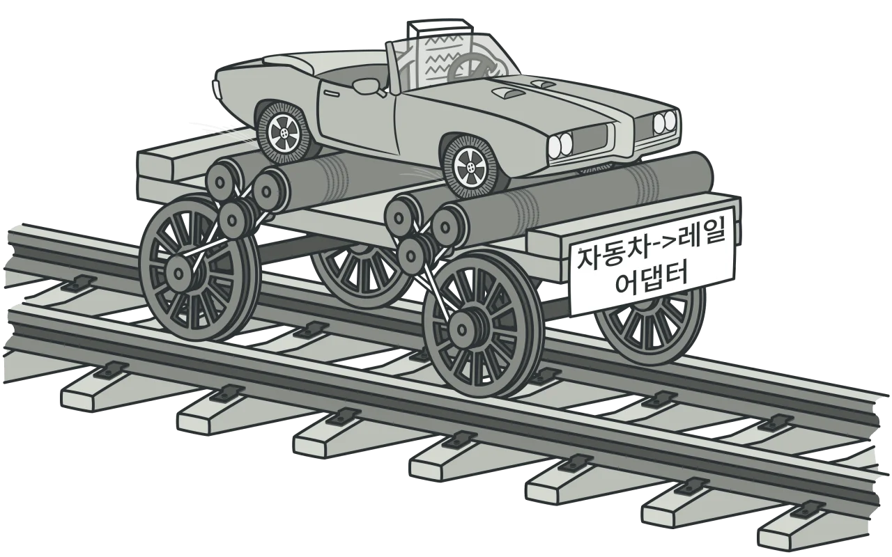 자동차가 레일위를 달리고 있다..!