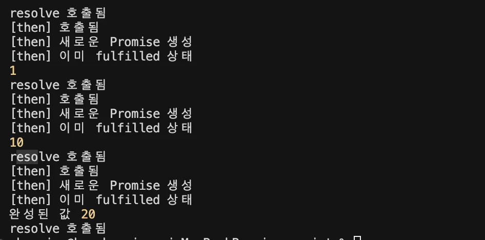이렇게 첫 체이닝에서의 then만 잘 작동하고 이후의 then은 잘 작동하지 않는 모습이다.